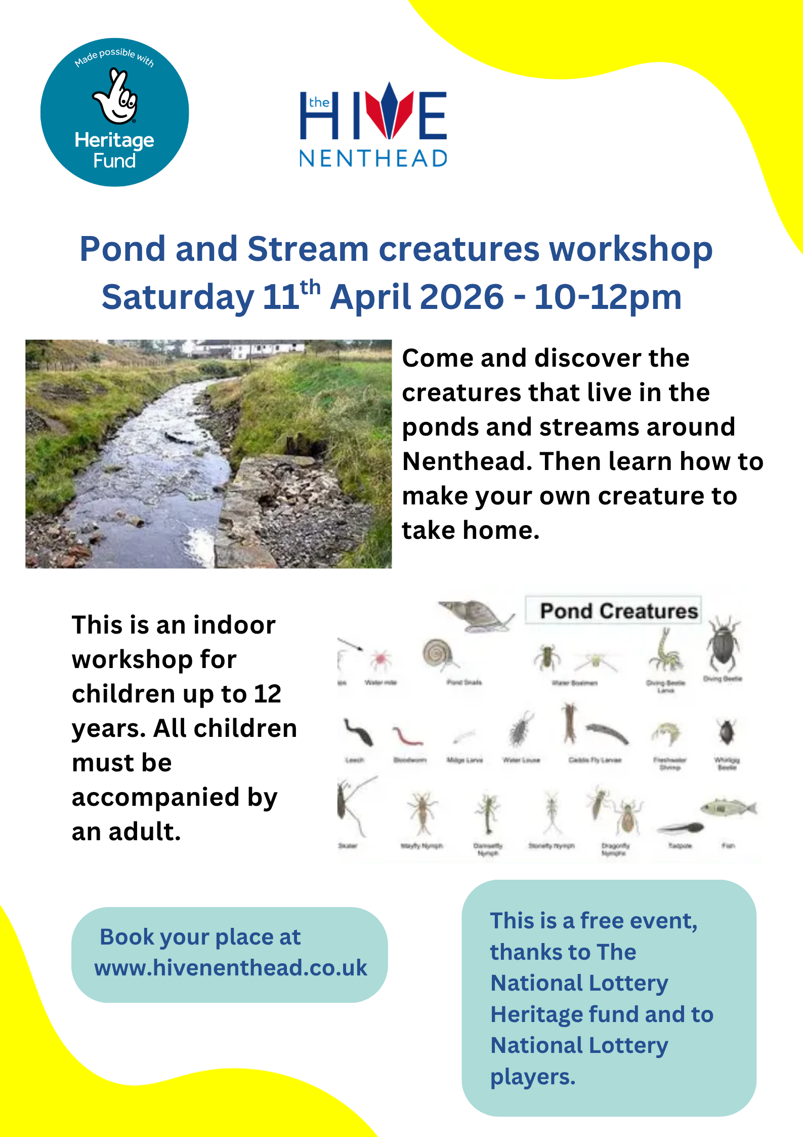 Pond and Stream Creatures Workshop (up to 12yrs) – Saturday 11th April